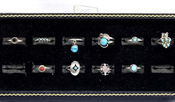 Total of 10 Rings to include 8 Navajo Rings sizes 2-6. 3-7, 4-8, & 1-9. The Zuni Needle Point is size 6 & the Zuni Petit Point is size 7. Total gram weight is 14.7