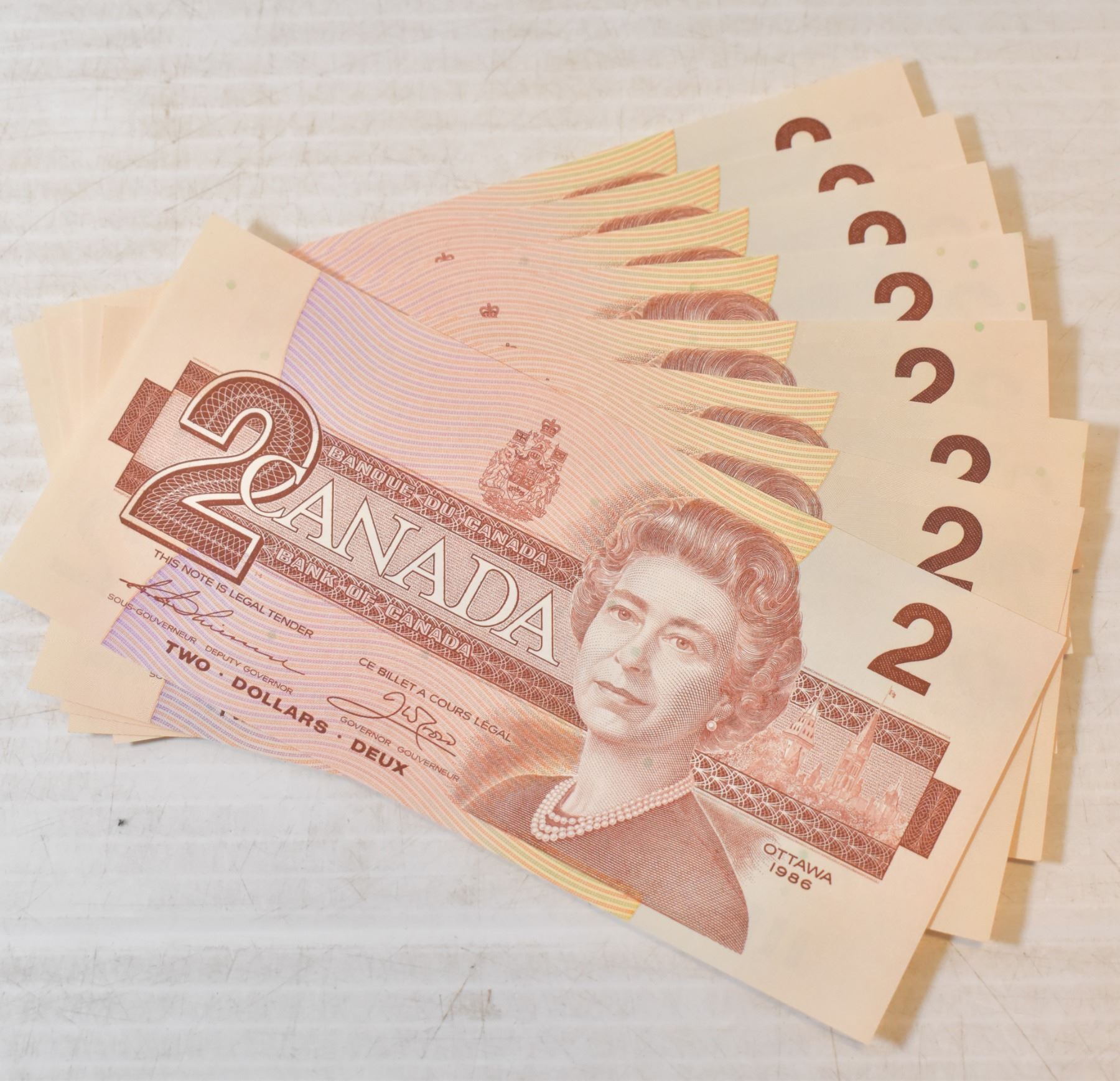 8 OF 1986 CANADIAN $2 BILL - (EIGHT BILLS)