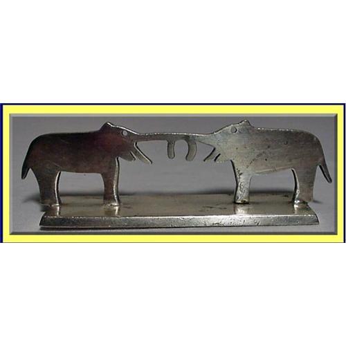 Each knife rest is a fabulously designed animal, fish or bird, very stylised in typical Art Deco manner. Each piece stands on a rectangular base, with impressed factory mark YOREL.