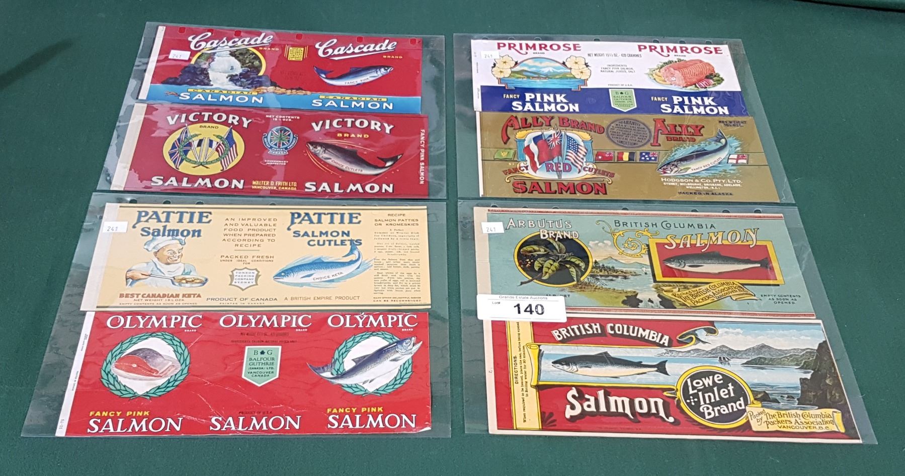 8 ORIGINAL VINTAGE UNUSED BC SALMON LABELS