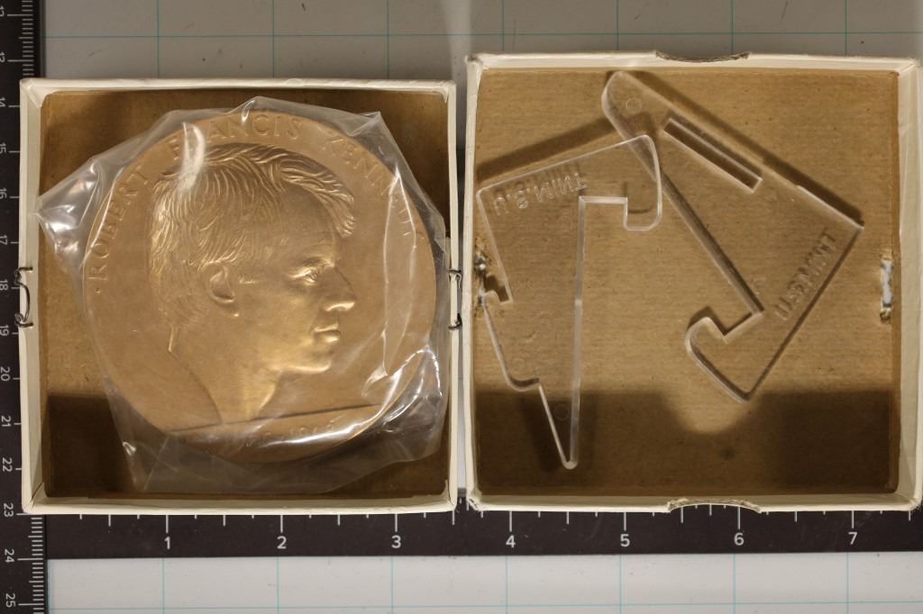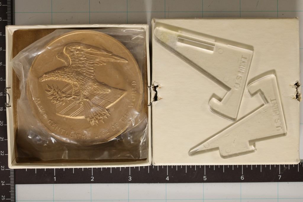ANTIQUE FINISH "MAKE GENTLY THE LIFE OF THE WORLD" WITH STAND, IN ORIGINAL US MINT PACKAGING BOX