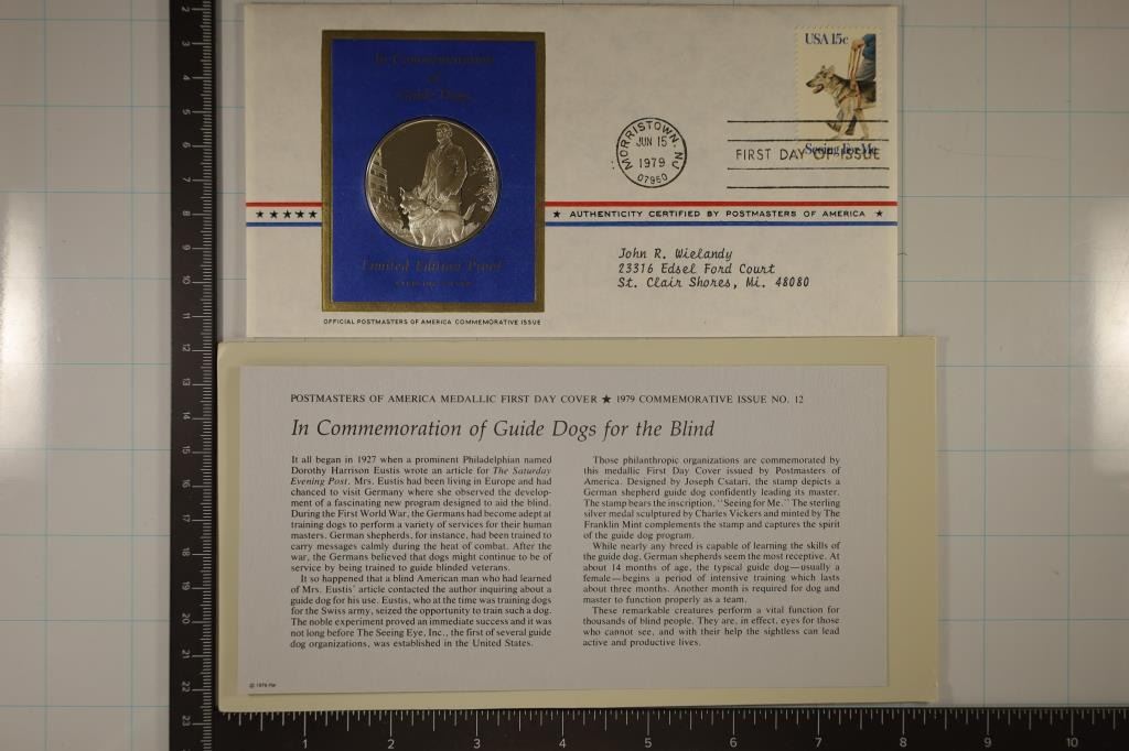OF AMERICA/ BY THE FRANKLIN MINT. IN COMMEMORATION OF GUIDE DOGS, LIMITED EDITION IN FDC WITH ENVELOPE AND INFO SHEET.