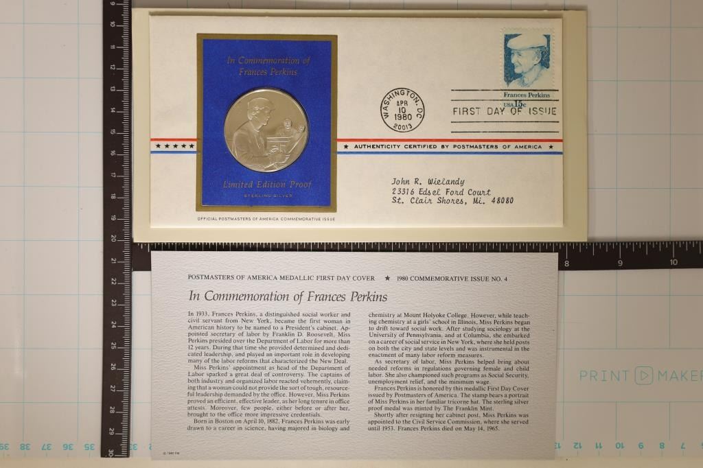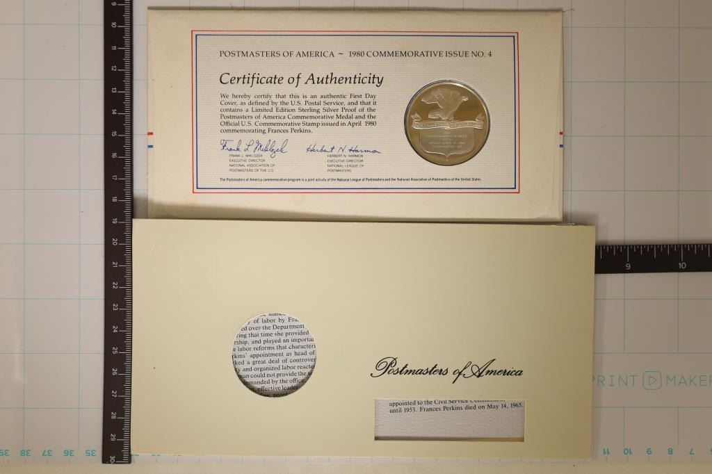 COMMEMORATION OF FRANCES PERKINS. LIMITED EDITION WITH INFO CARD BY THE FRANKLIN MINT