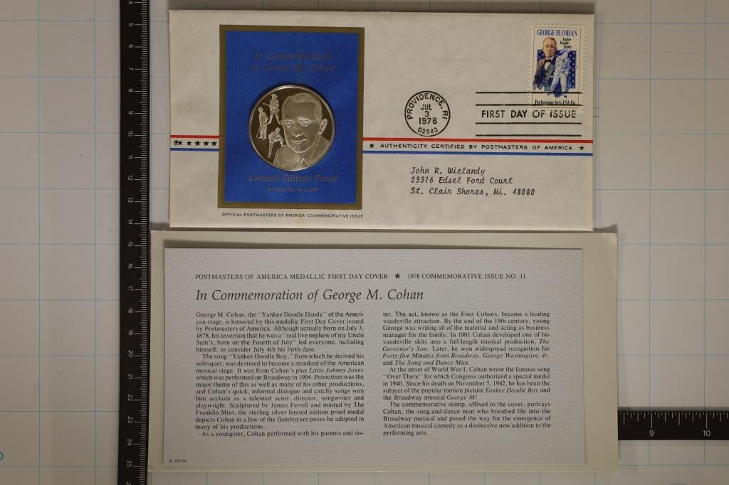 COMMEMORATION OF GEORGE M. COHAN, POSTMASTERS OF AMERICAN WITH INFO CARD