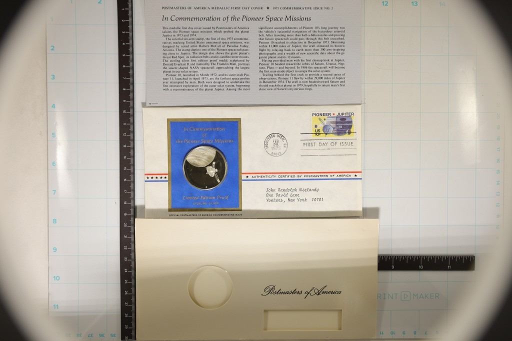 COMMEMORATION OF PIONEER SPACE MISSIONS WITH INFO CARD BY THE POSTMASTERS OF AMERICA