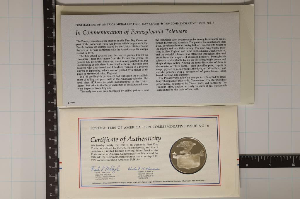 COMMEMORATION OF AMERICAN FOLK ART, LIMITED EDITION POSTMASTERS OF AMERICA WITH INFO CARD FROM THE FRANKLIN MINT