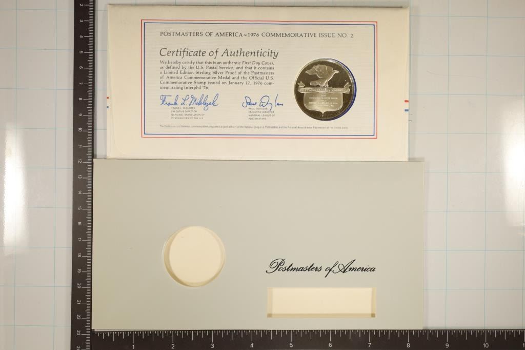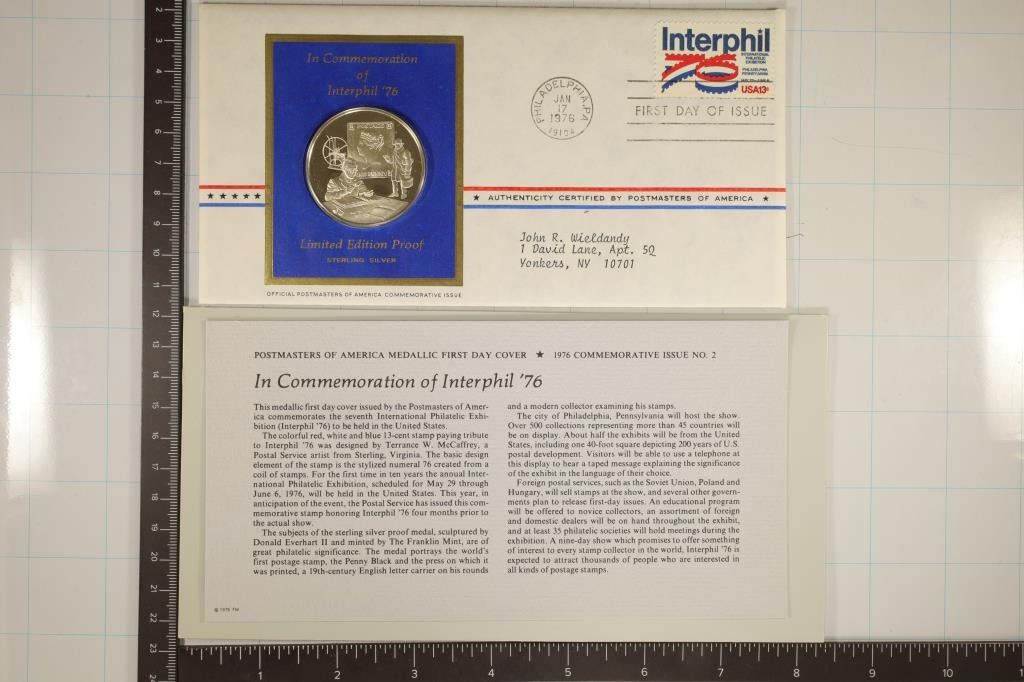 COMMEMORATION OF INTERPHIL '76. LIMITED EDITION PROOF BY THE FRANKLIN MINT AND WITH INFO CARD