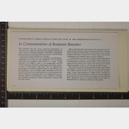 AMERICA 1ST DAY COVER "COMMEMORATION OF BENJAMIN BANNEKER" WITH INFO CARD BY THE FRANKLIN MINT