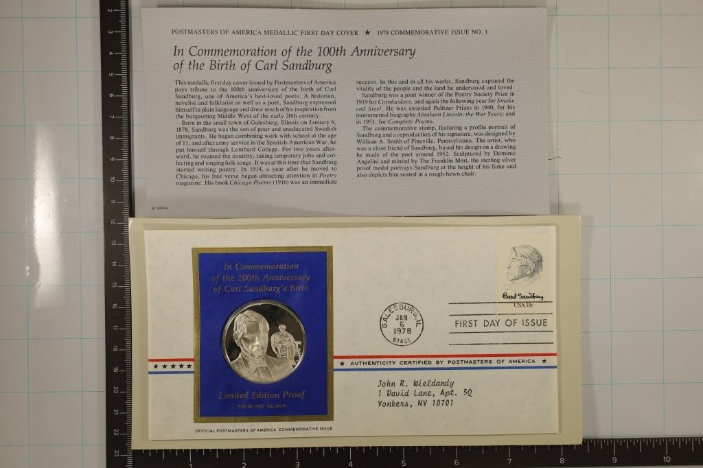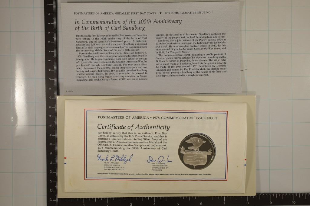 LIMITED EDITION MEDAL. IN COMMEMORATION OF THE 100TH ANNIVERSARY OF CARL SANBURG'S BIRTH. FROM JAN. 6TH, 1978. BY THE FRANKLIN MINT