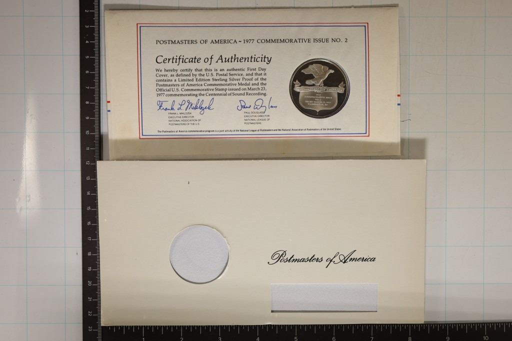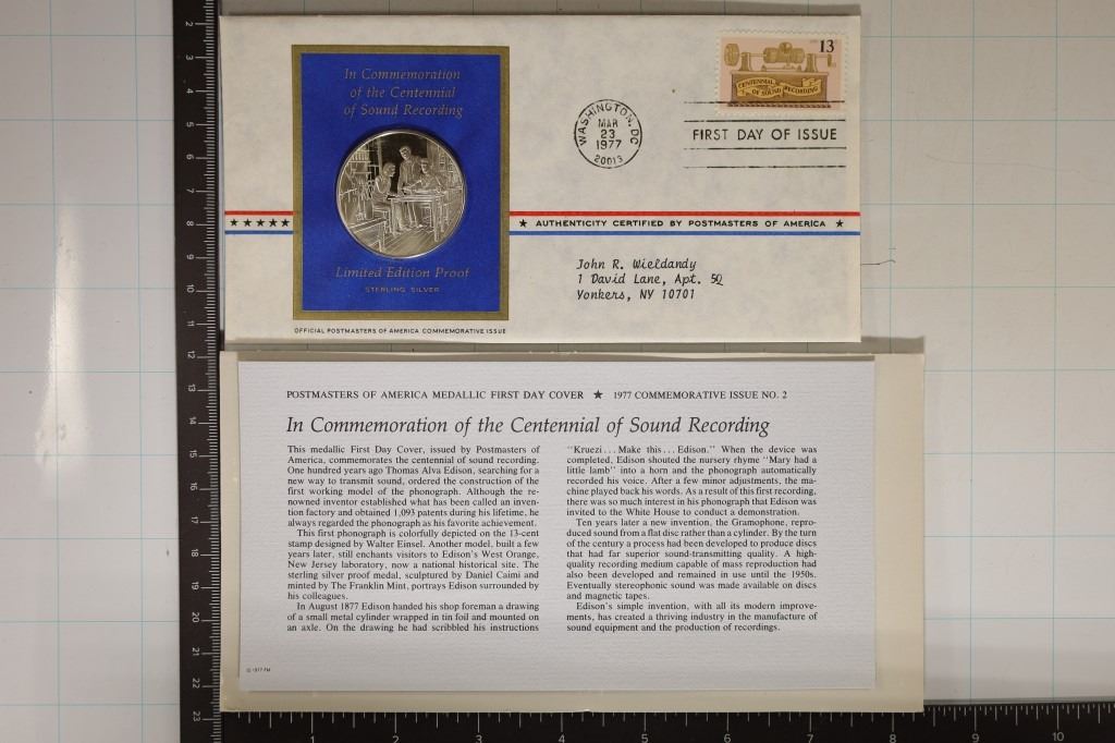 ROUND COMMEMORATING THE CENTENNIAL OF SOUND RECORDING, LIMITED EDITION PROOF IN FDC'S FROM MARCH 23RD, 1977, IN ORIGINAL MINT PACKAGING FROM THE FRANKLIN MINT