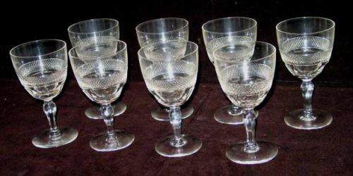 Set of 8, Orrefors Cut Glass Wine Goblets, 6" tall.