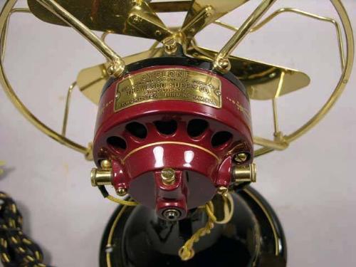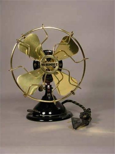 8" oscillator Fenominee electric fan by Cyclone, 11" t. The Wesco Supply Co. Professionally restored.