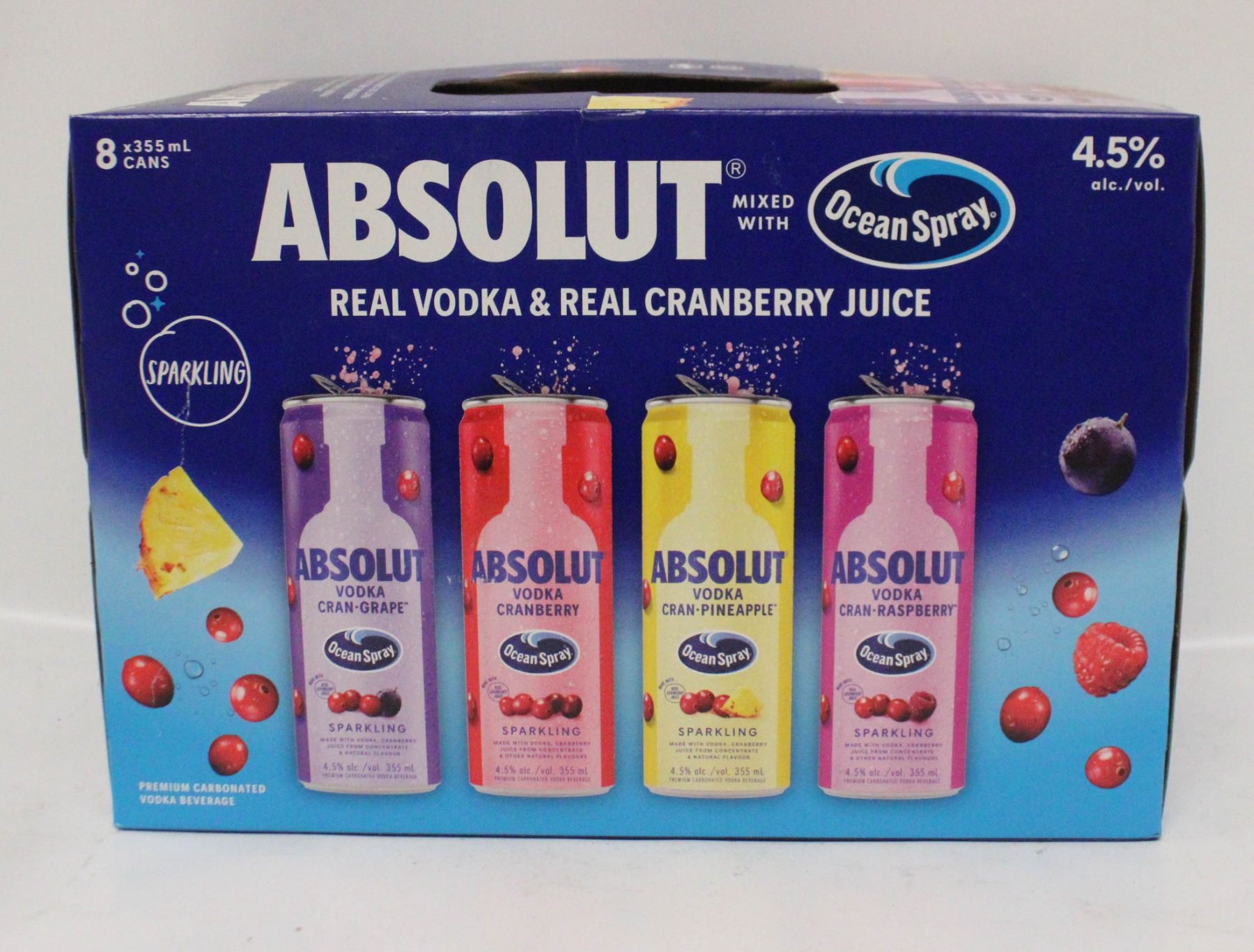 8 PACK ABSOLUT VODKA MIXED WITH OCEAN SPRAY 4.5%