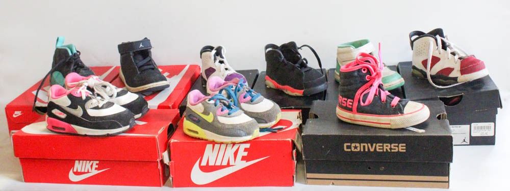 8 PAIRS OF NIKES/JORDANS AND CONVERSE KIDS SHOES