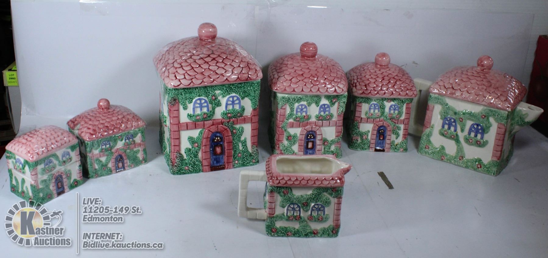 CANNISTERS, TEAPOT, CREAM & SUGAR, SALT & PEPPER; NO CHIPS OR PROBLEMS.