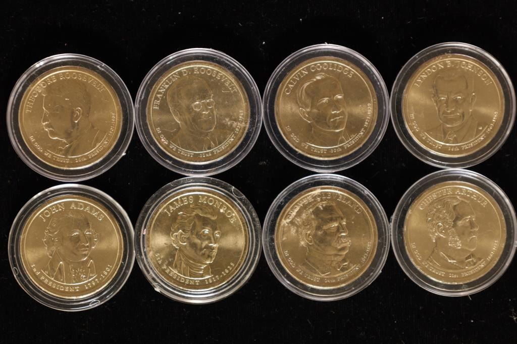 2007-P JOHN ADAMS, 2008-P JAMES MONROE, 2012-D GROVER CLEVELAND, 2012-P CHESTER ARTHUR, 2013-D THEODORE ROOSEVELT, 2014-P CALVIN COOLIDGE, 2014-P FRANKLIN ROOSEVELT AND 2015-P LYNDON B. JOHNSON