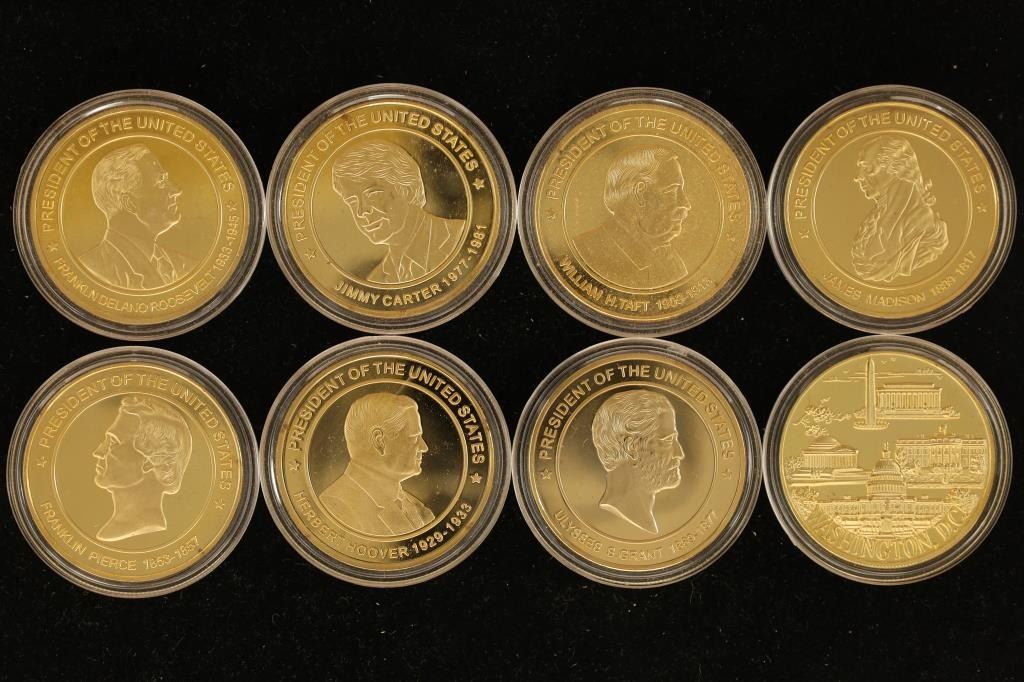 PLASTIC CAPSULES. FRANKLIN ROOSEVELT, JIMMY CARTER, WILLIAM TAFT, JAMES MADISON, FRANKLIN PIERCE, HERBERT HOOVER, ULYSSES S. GRANT AND THE WHITEHOUSE WASHINGTON D.C.