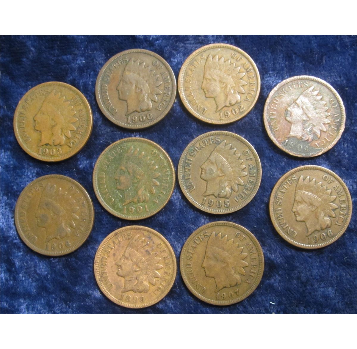 8. Pack of 10 Indian Head Cents 1899 thru 1908.