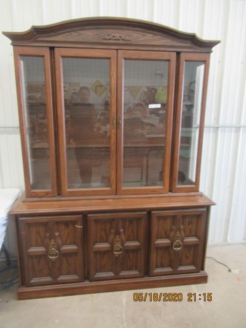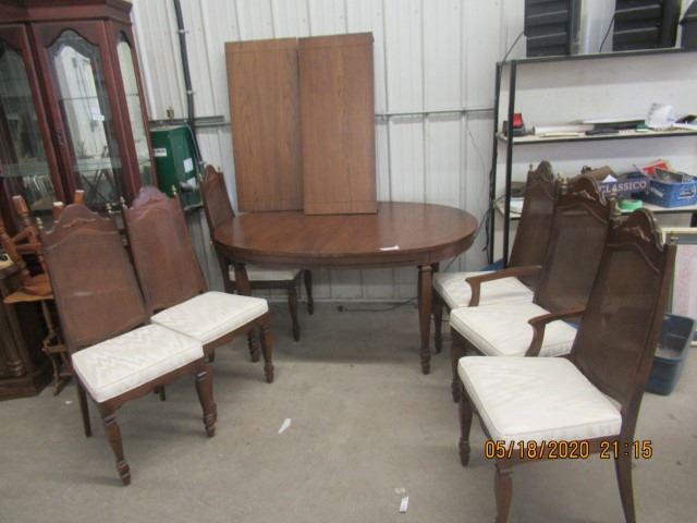 8 Pc Dining Room Suite- Buffet/China Cabinet Table , 2 Leaves, 6 Chairs, (1 is a Captain Chair)