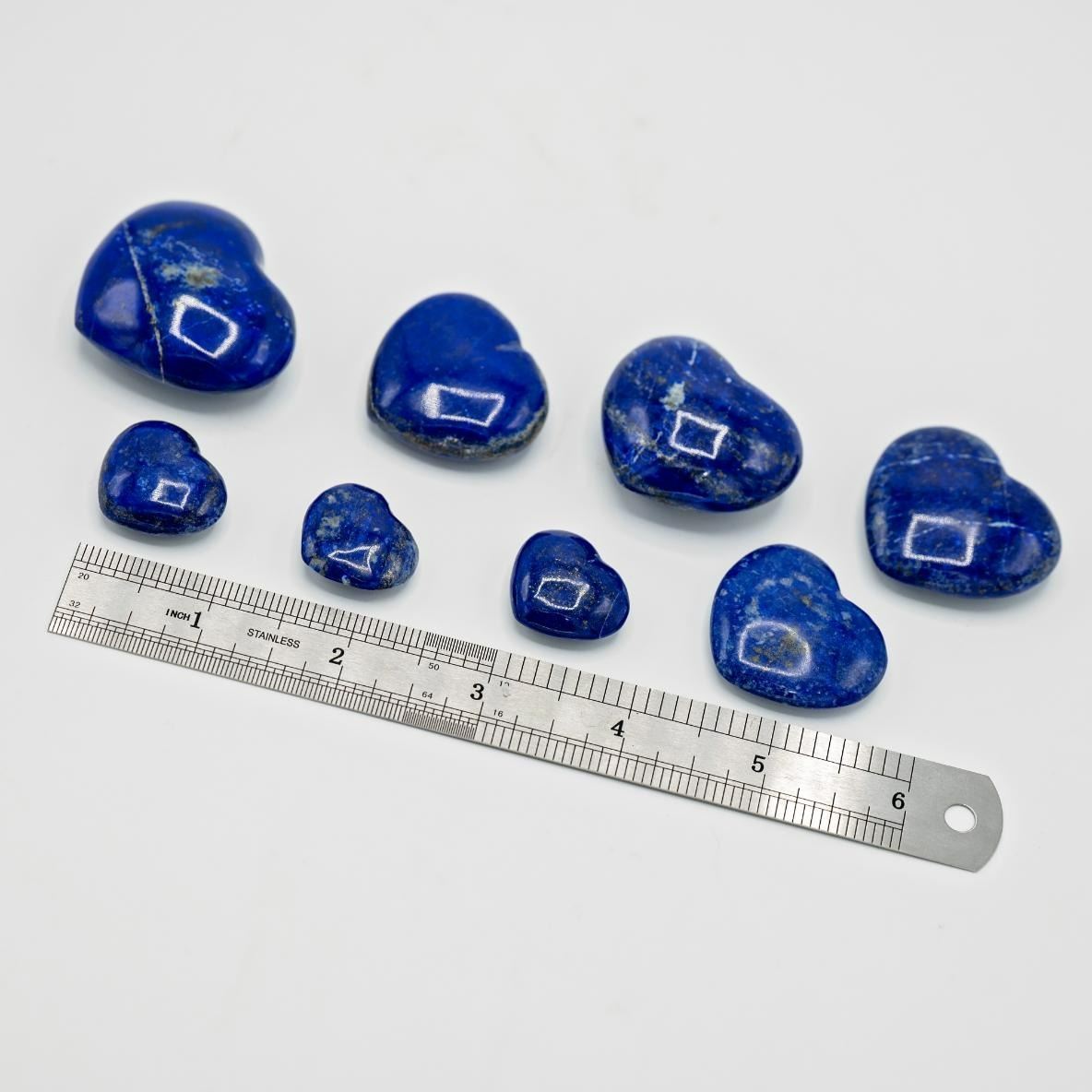 These 8 Natural Blue Lapis Lazuli Are Highly Polished Heart Cabochon Cuts Weighing 652 Cttw. These blue lapis lazuli also has the highly desired Gold Pyrite Accents. Blue lapis lazuli is treasured for its beautiful deep blue color. Very pretty gemstones. Perfect for pendants or many people treasure it's metaphysical healing properties.