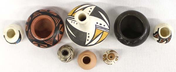 8 Pieces of Native American Pottery Miniatures, largest measures 3'' x 2'', 6 pieces are signed