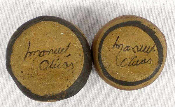 8 Pieces of Vintage Pottery Miniatures, most are Mata Ortiz, largest measures 1.75'' x 1.25'', two are signed Manuel Olivas, ''In 1952, in Casas Grandes, Manuel Olivas began to produce low temperature ceramics decorated with the designs from the pieces found at the archaeological sites.''