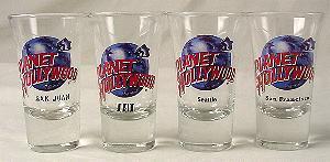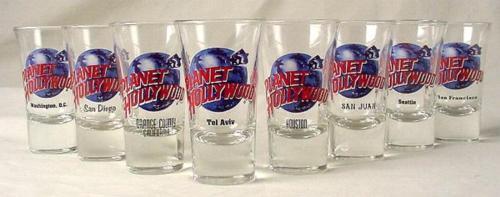 Identical Planet Hollywood shot glasses have sold on auction for over $70.00. This is a great lot of hard to find Planet Hollywood collectibles. Please check out our other auctions featuring rare Planet Hollywood shot glasses.