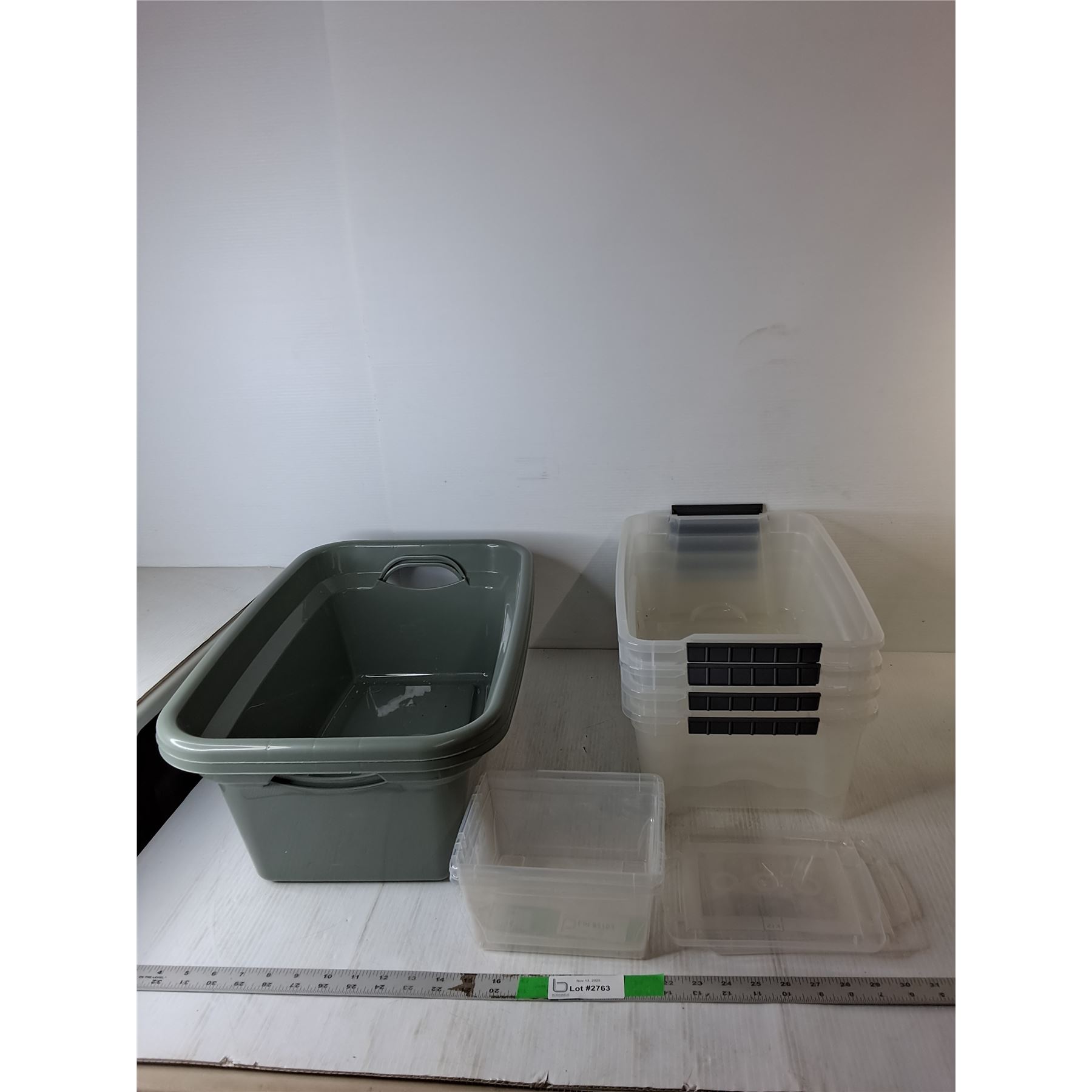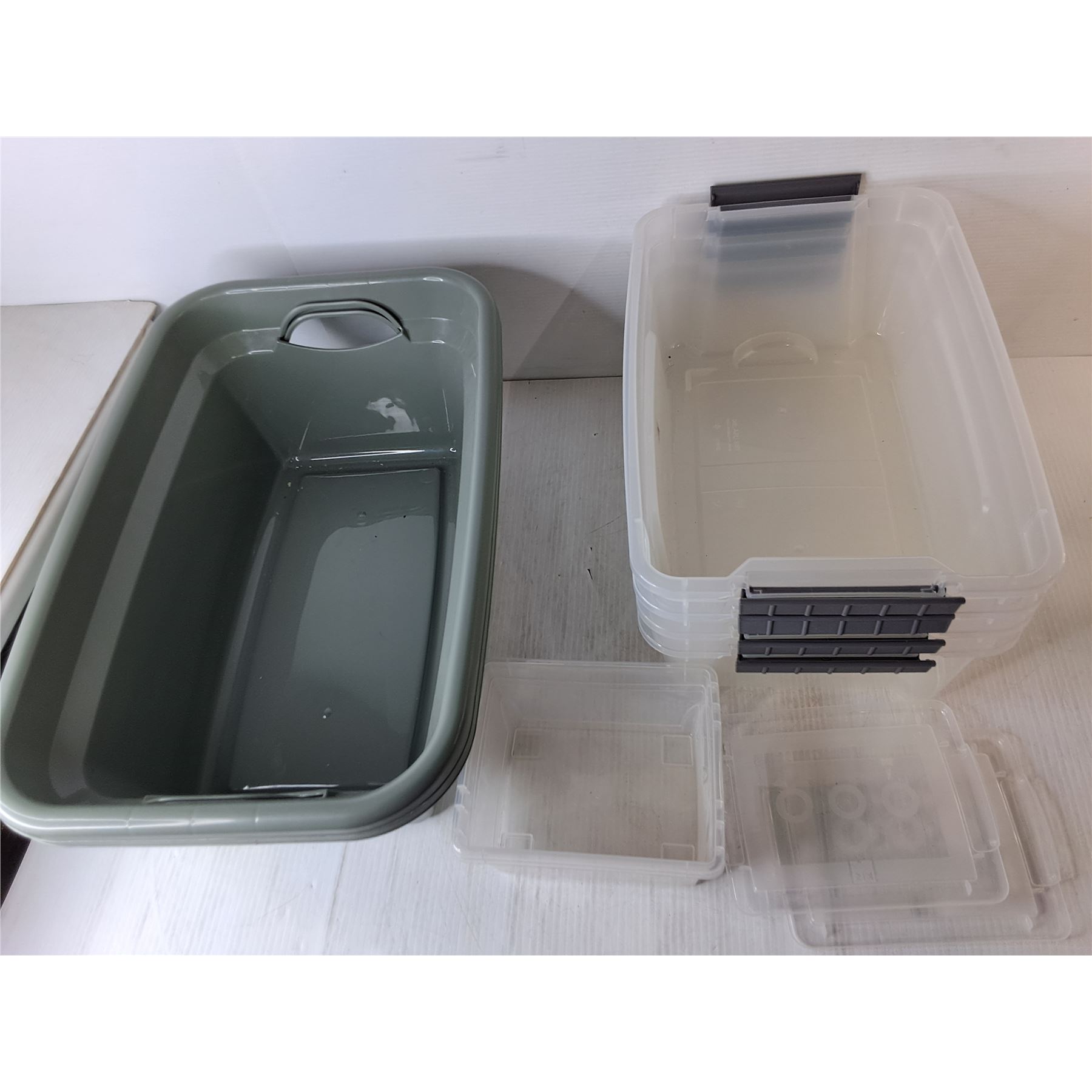 (8) Plastic Containers Up to 21  x 13  x 7.5  & (2) Lids