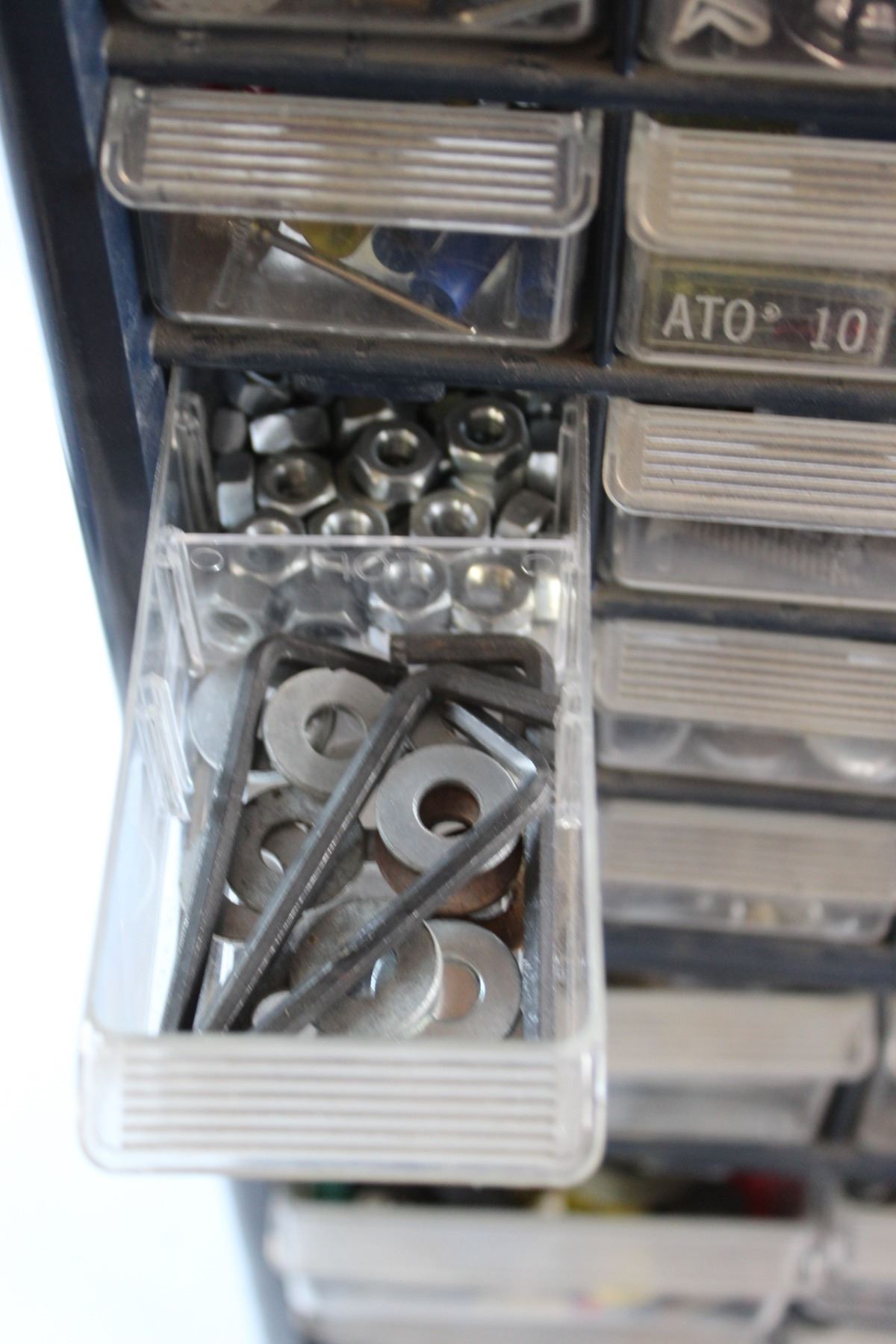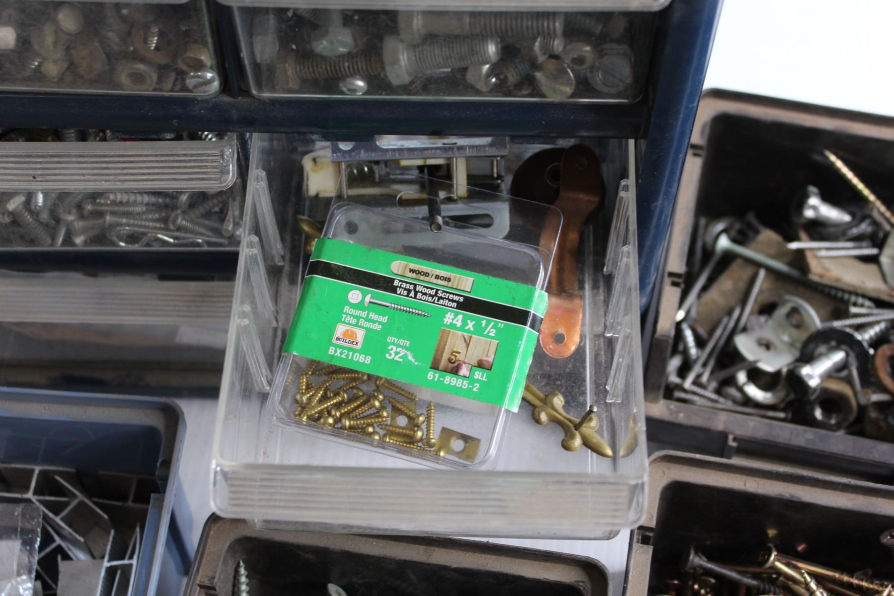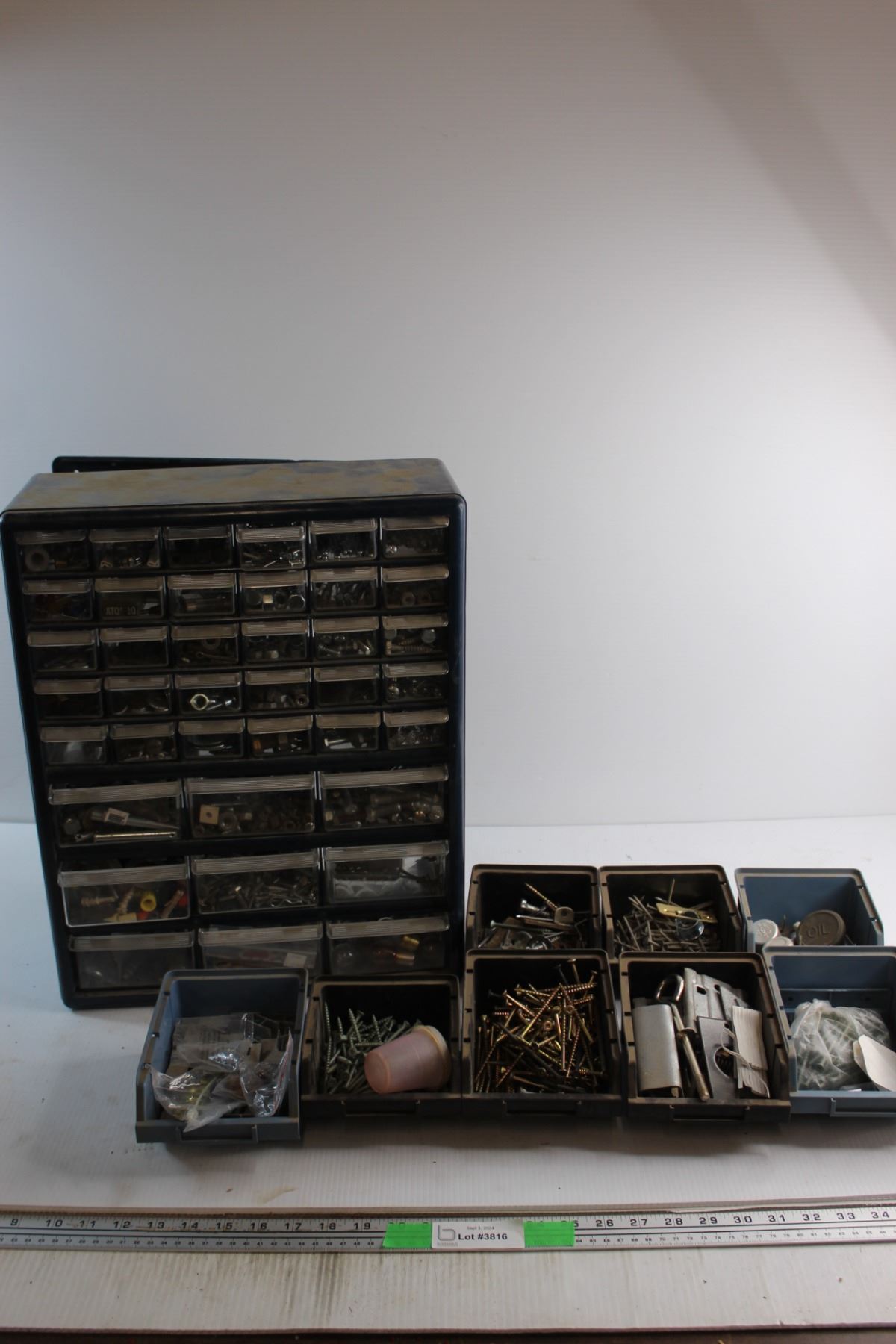(8) Plastic Trays, Multi Tool Drawer and Assorted Hardware