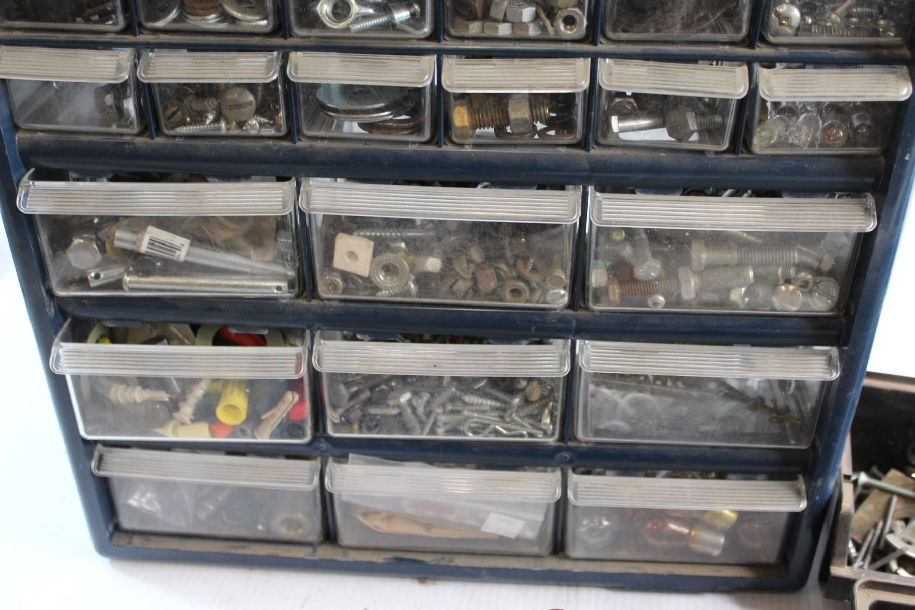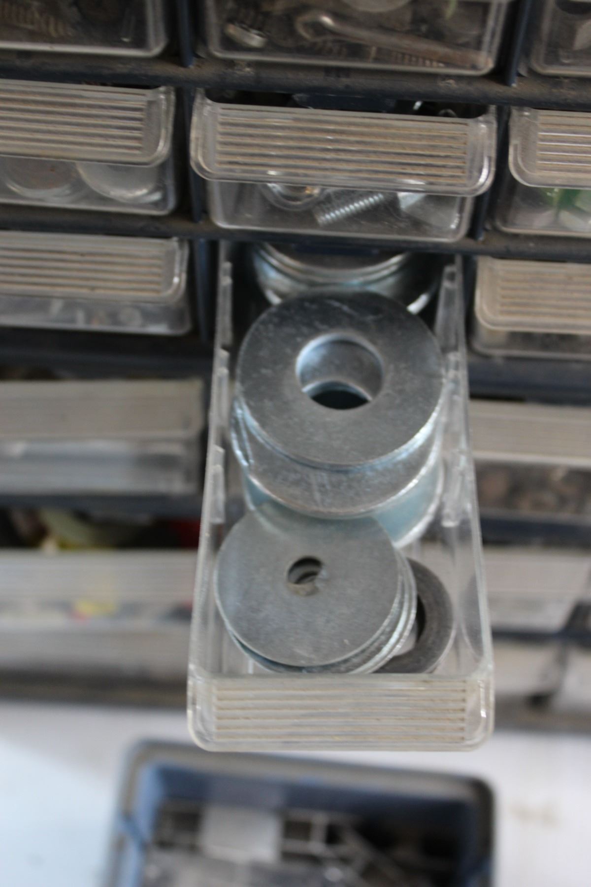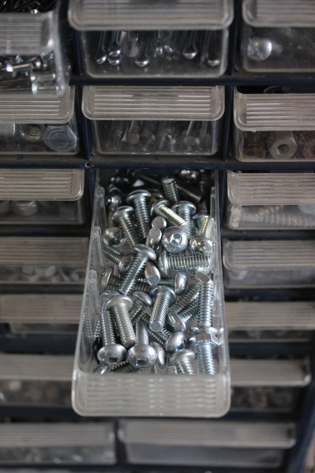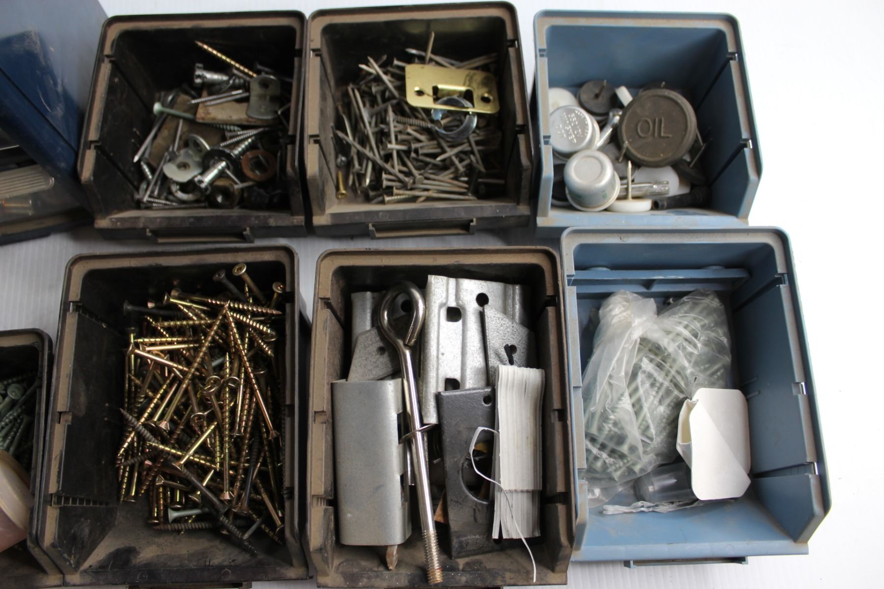 (8) Plastic Trays, Multi Tool Drawer and Assorted Hardware