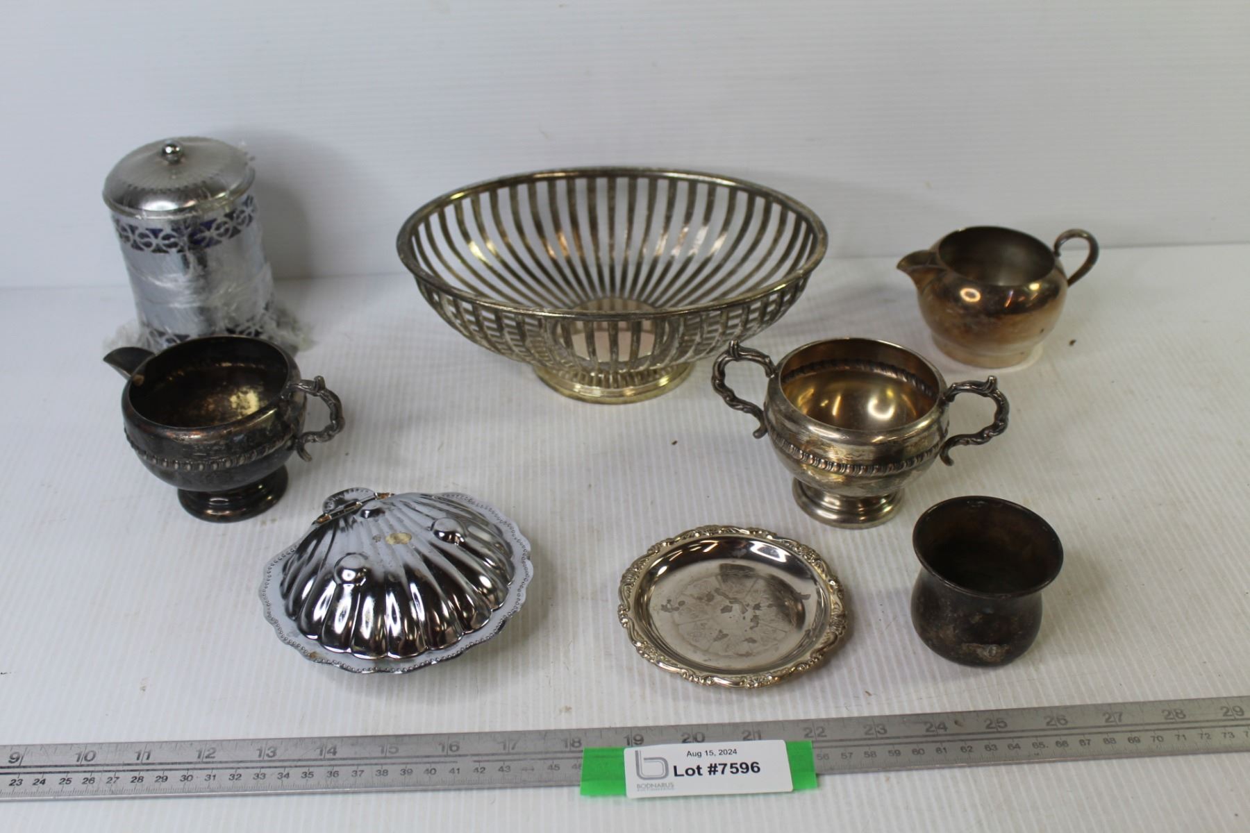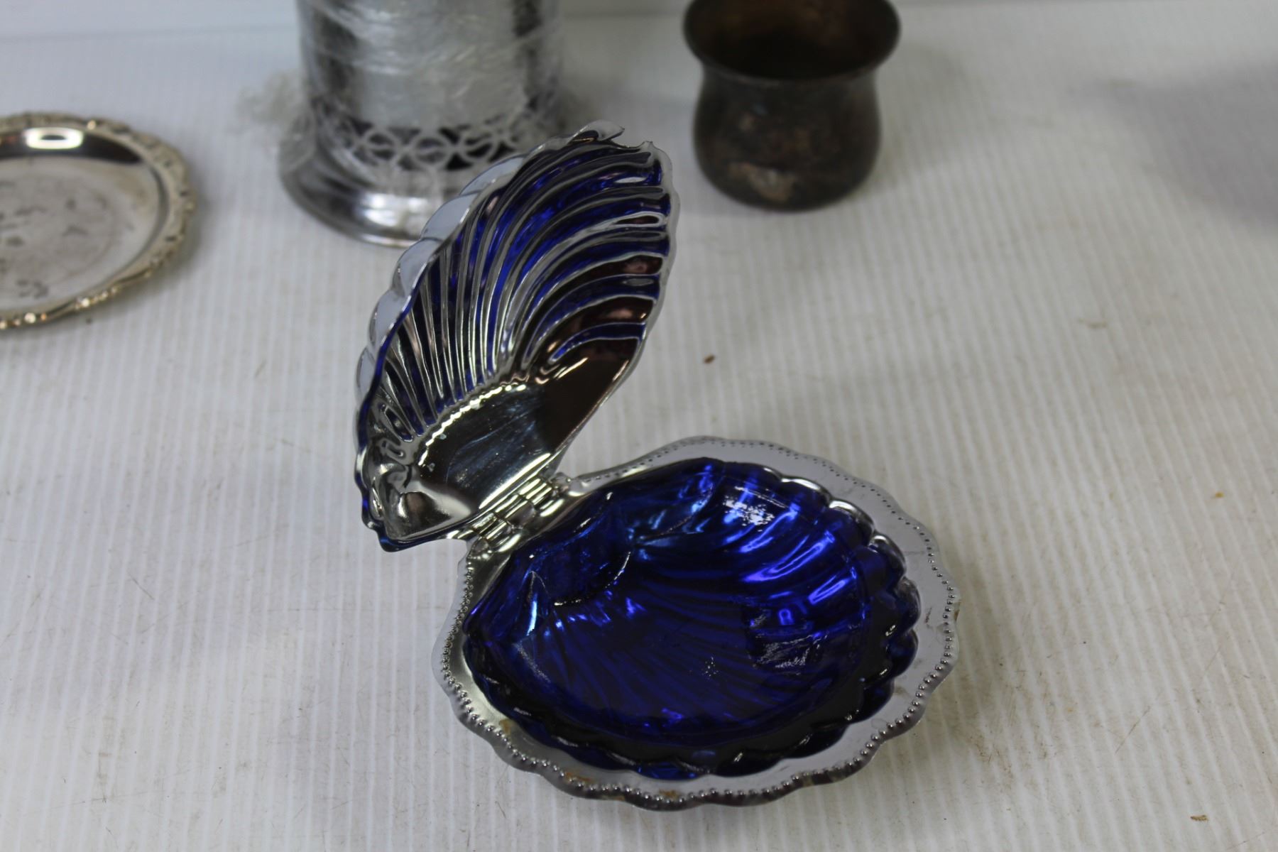 (8) Plated Items - Sugar Dishes - Shell w/Blue Glass Dish - Misc. Items