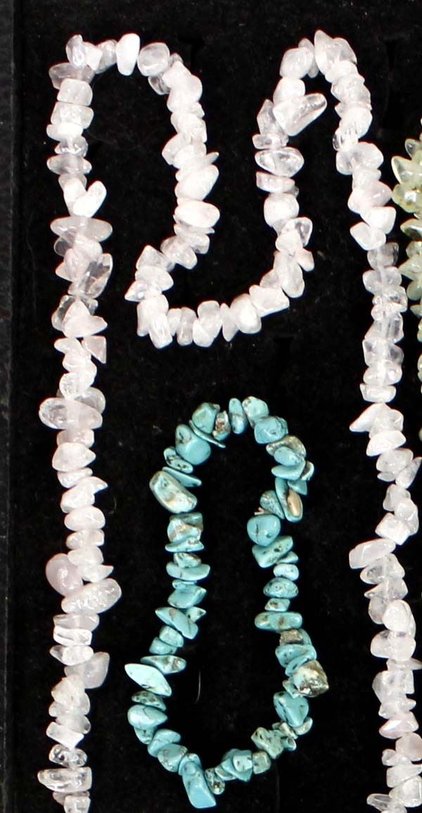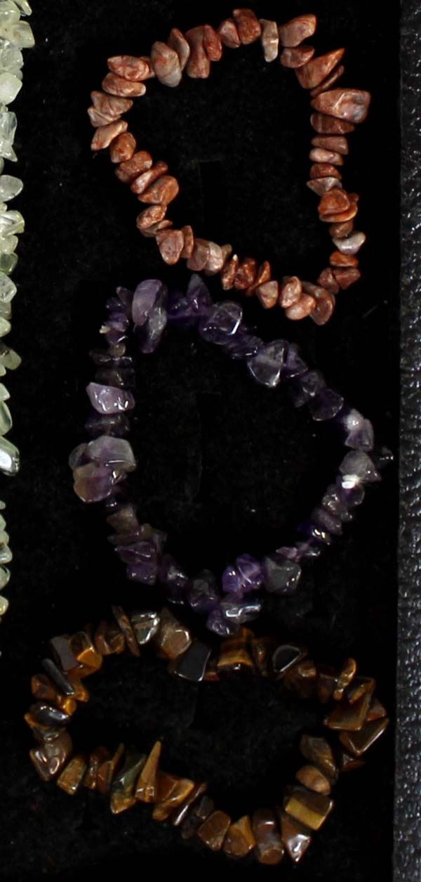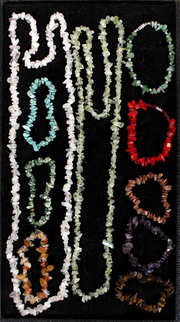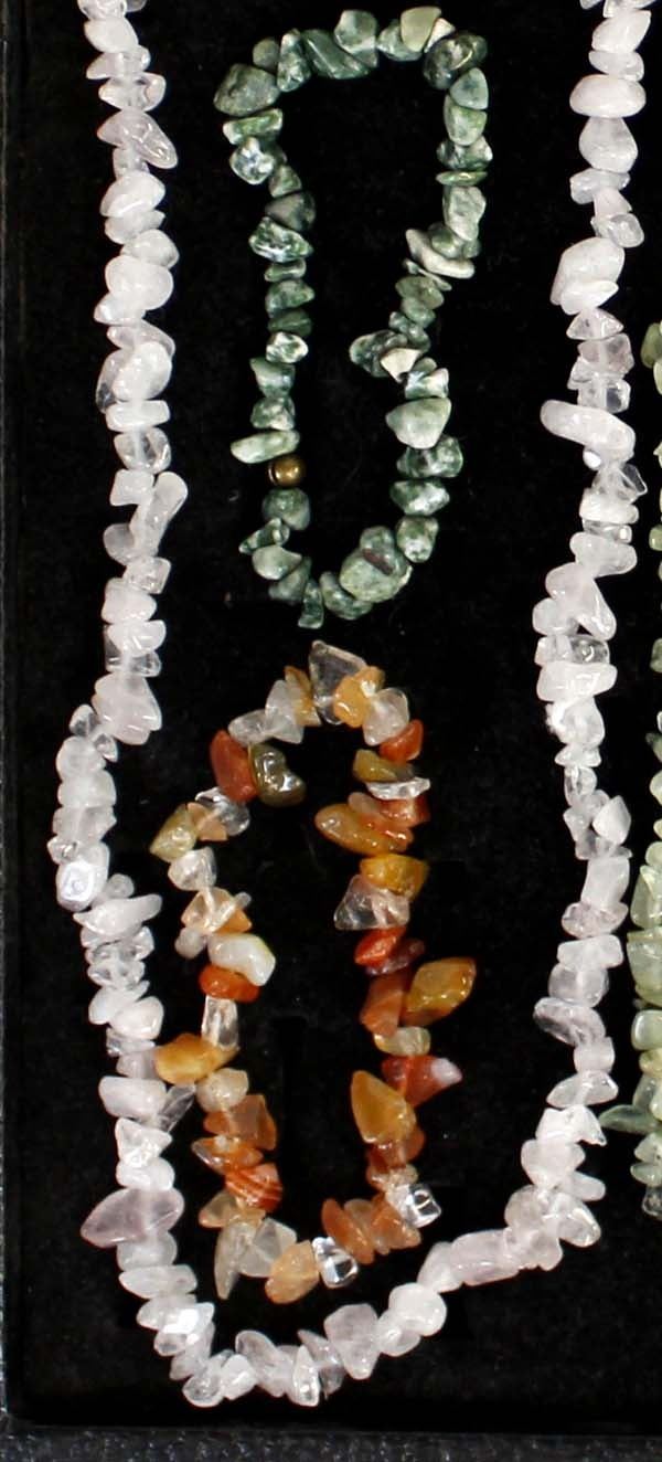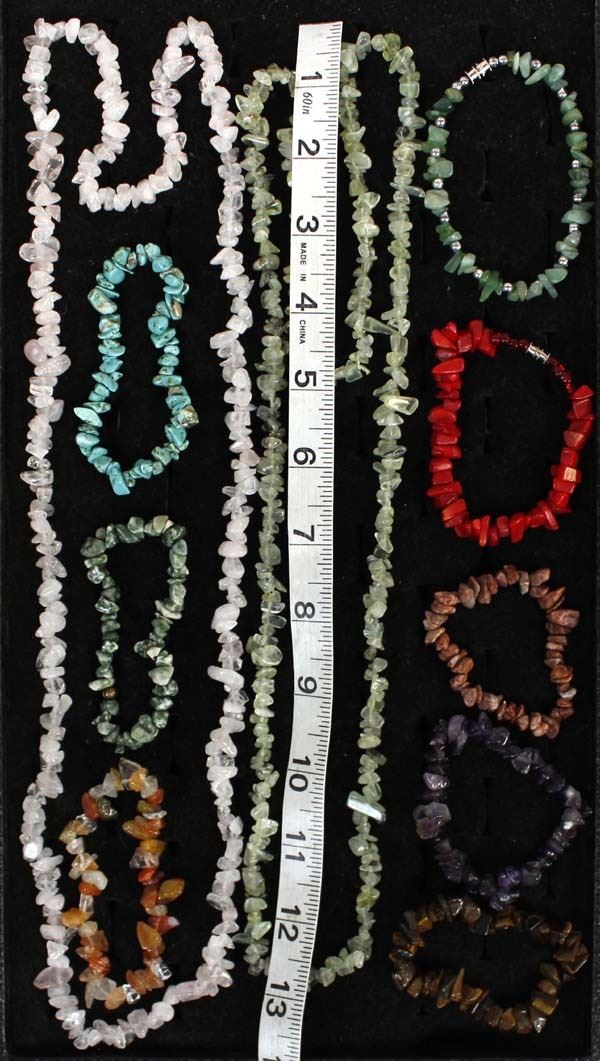 8 Precious Gemstone Bracelets & 2 Necklaces, includes turquoise, amethyst, coral, jasper, tiger's eye, jade, quartz, and agate, longest necklace measures 32''L end to end, bracelets are on elastic