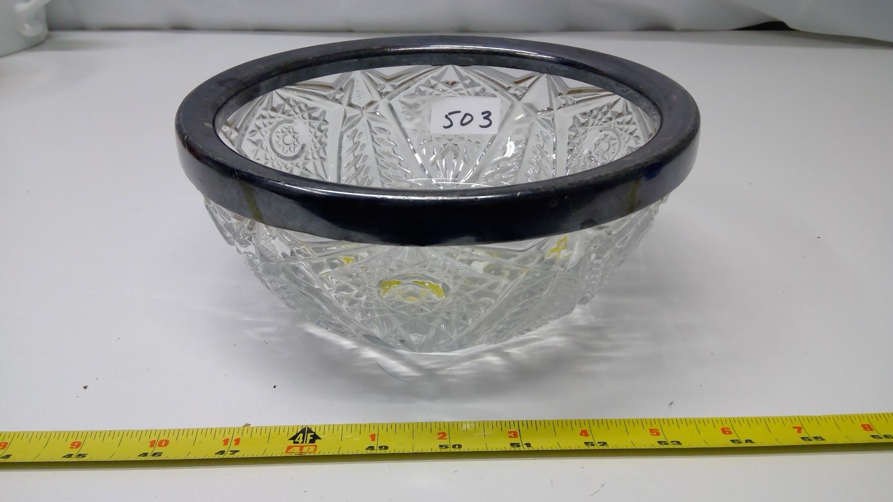 8" Pressed Glass Silver Trim