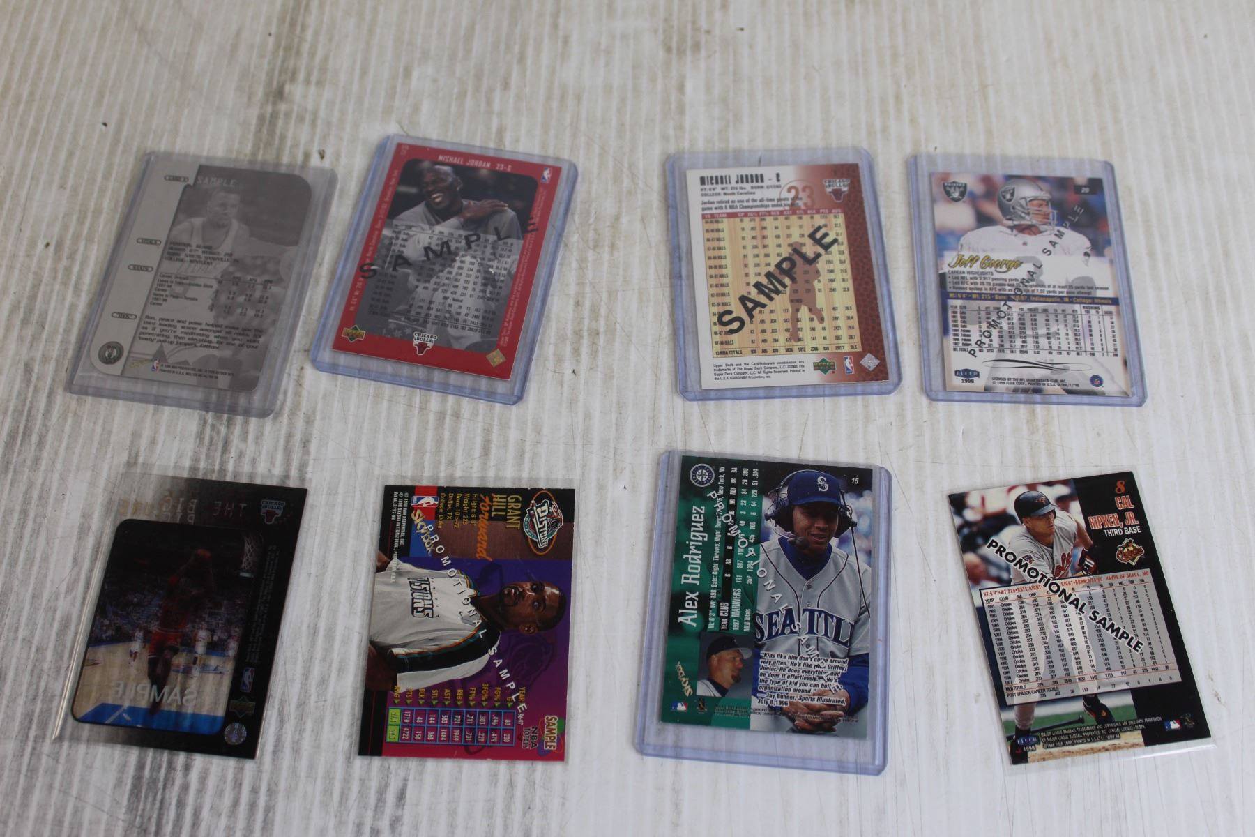 (8) Promo Cards - (3) Jordan, Grant Hill, Ron Mercer, Jeff George, Ripkin, Alex Rodriguez