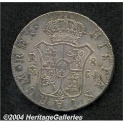 <B>8 REALES 1815GJ-M,</B></I> KM466 VF. <BR><BR><B>Important notice:</B> Heritage usually auctions material at the rate of 200-250 lots per hour. On some occasions eBay Live bid software or the Internet may not be able to keep up with the pace of the auction. We recommend placing a realistic absentee bid now as insurance to avoid disappointment. Occasionally the auctioneer may eliminate or reject an eBay Live bid, and the auctioneer may also reopen a lot after the close of the eBay live bidding (usually because we missed an audience bid), and may reject your bid even if it shows you as the winning bidder. By bidding via eBay Live, you agree that Heritage may award the lot to another bidder at its sole discretion under the circumstances described above or any other reasonable circumstances. Since eBay bids are not shown to us until we open the lot on the floor, we treat those bids just like floor bids. In most cases the floor responds before the eBay bid is presented to us, due to Internet lag time, so for consistency we have made it a policy that floor bids are always considered first over tie eBay live bids. Also please note that all Heritage lots purchased through eBay Live carry a 20% Buyer's Premium. Please make sure you read the Terms and Conditions before you bid.