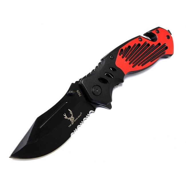 8" RED SPRING ASSISTED KNIFE W/ BELT CUTTER, BELT CLIP,