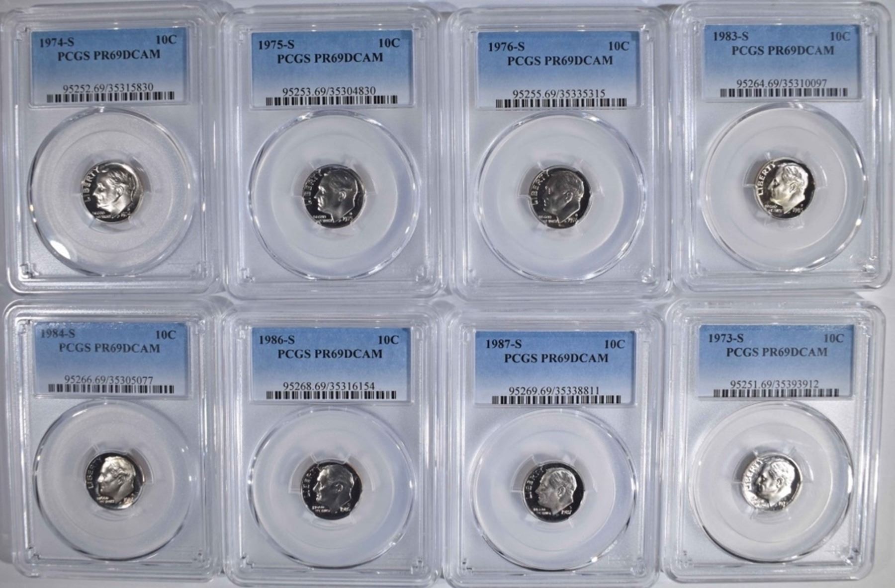 1973-S, 74-S, 75-S, 76-S, 83-S, 84-S, 86-S, 87-S. SILVER CITY AUCTIONS. ESTIMATE $125 - $150.