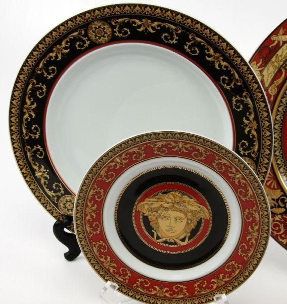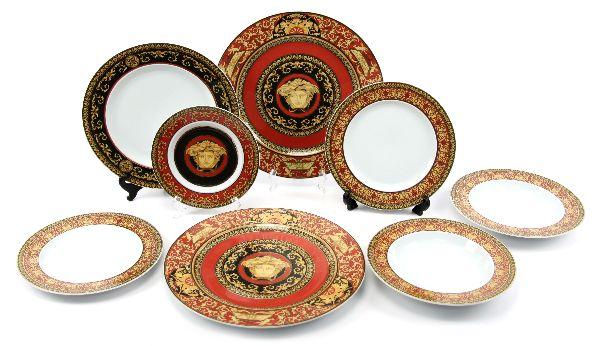 Set includes: a 7.25 inch luncheon plate, (2) 9 inch plates, (2) 8.75 inch soup bowls, a 10.5 inch plate, and (2) 12 inch charger plates. All in excellent condition with original boxes.