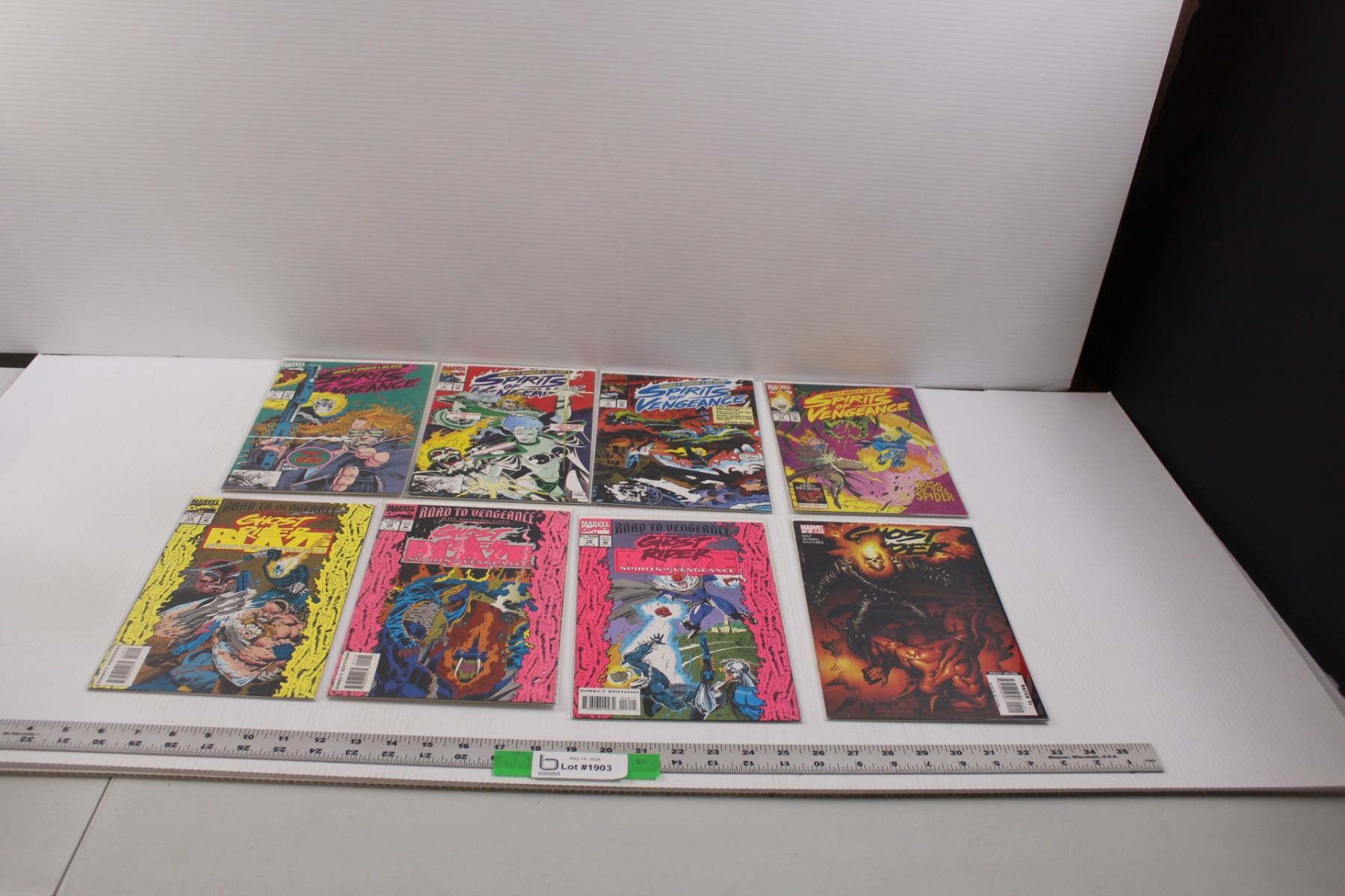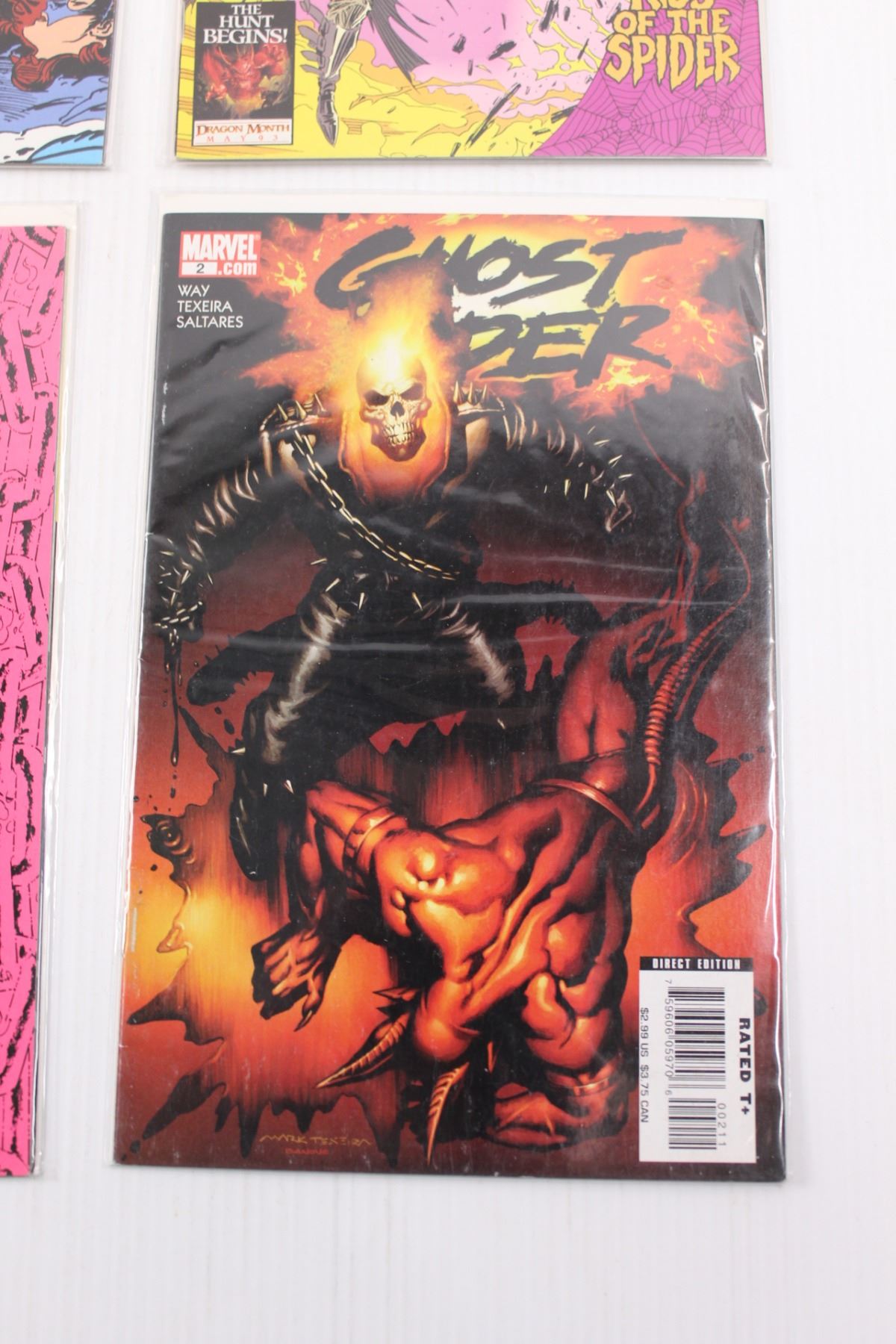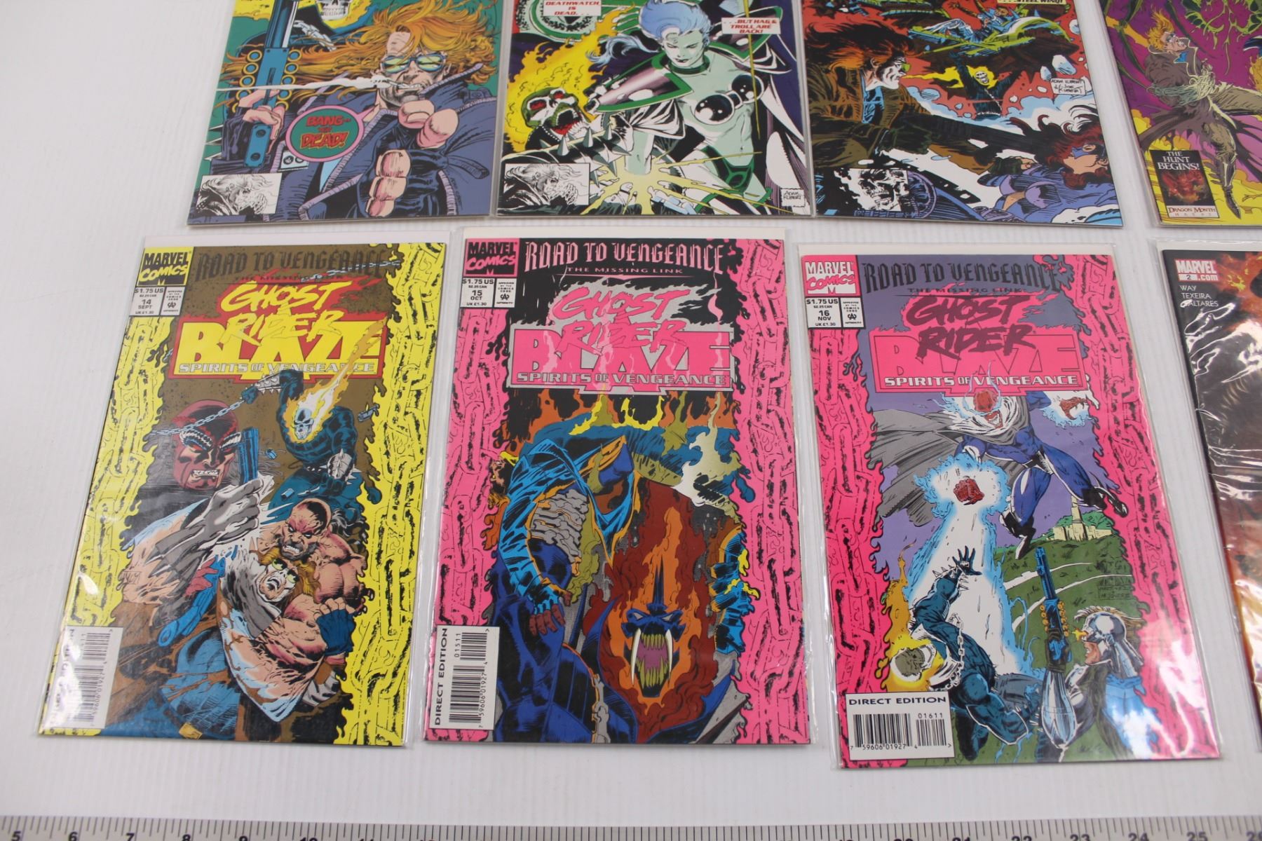 (8) Raw Marvel Comics: (4) 1992 "Ghost Rider & Blaze: Spirits of Vengeance" (Issues No.2,4,7,11), 1993 "Ghost Rider & Blaze: Spirits of Vengeance, Road To Vengeance, The Missing Link" Issues No.14,15,16 & 2006 "Ghost Rider" Issue No.2 (All Bagged w/Backer Boards)