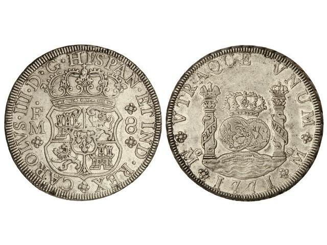 8 Reales. 1771. MÉXICO. F.M. 26,94 grs. Columnario. Restos de brillo. (Pequeños golpecitos). Cal-914. EBC-.