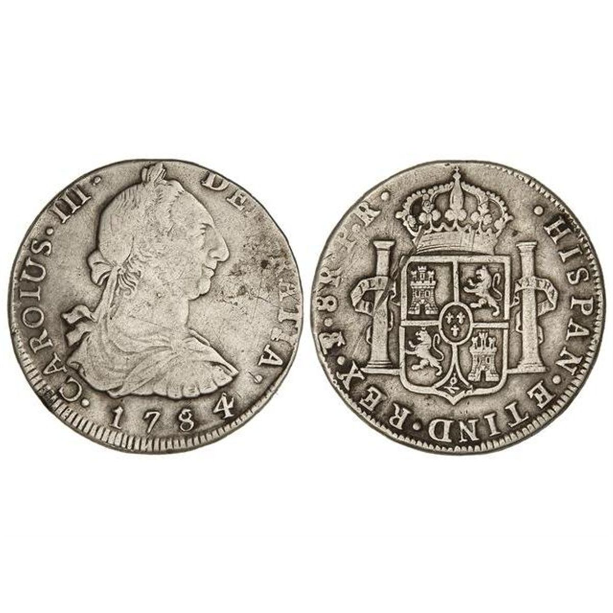 8 Reales. - 1784. - POTOSÍ. - P.R. - Pátina. (Acuñación algo floja en parte de la leyenda. Rayitas). Cal-991. MBC-. - -