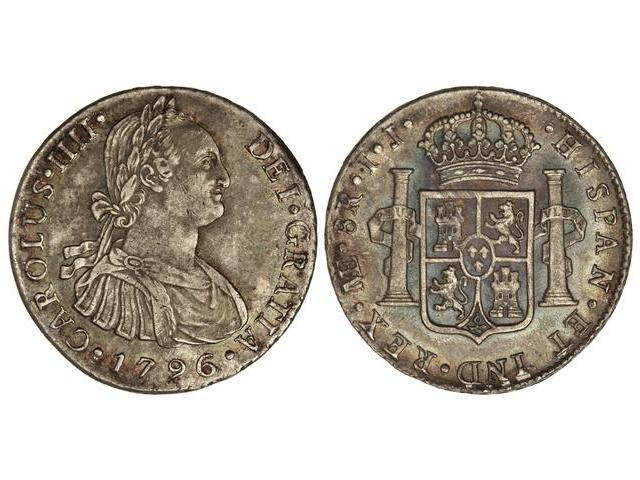 8 Reales. - 1796. - LIMA. - I.J. - Pátina irisada. (Pequeñas rayitas y golpecitos en anverso). Cal-651. EBC-. - -