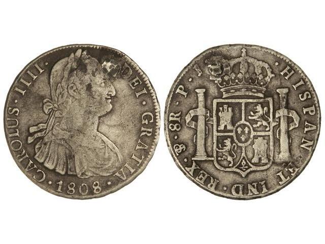 8 Reales. - 1808. - POTOSÍ. - P.J. - (Golpes. Perforación reparada). Cal-599. MBC-. - -