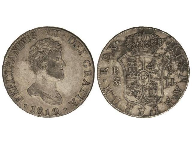 8 Reales. - 1812. - MADRID. - I.J. - Pátina. (Oxidaciones en reverso). RARA. Cal-496. MBC+. - -