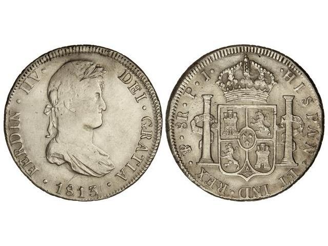 8 Reales. 1813. POTOSÍ. P.J. Error numeral del rey IIV. (Agujero tapado). RARA. Cal-602. MBC-/MBC.