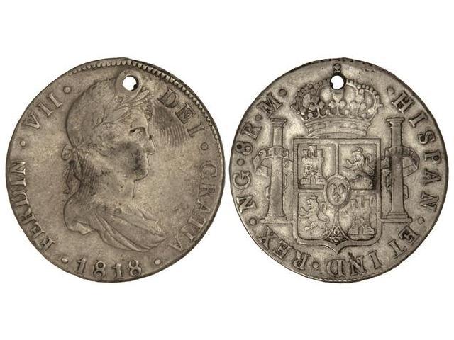 8 Reales. 1818. GUATEMALA. M. (Perforación y manchitas). Cal-467. MBC-.