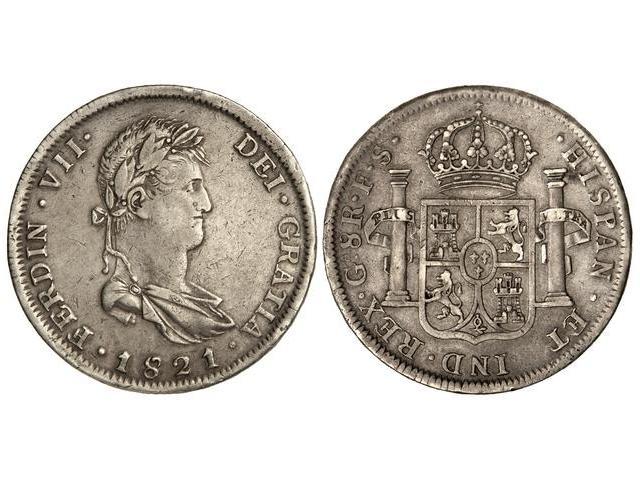 8 Reales. 1821. GUADALAJARA. F.S. Pátina. (Pequeños golpecitos). Cal-445. MBC.