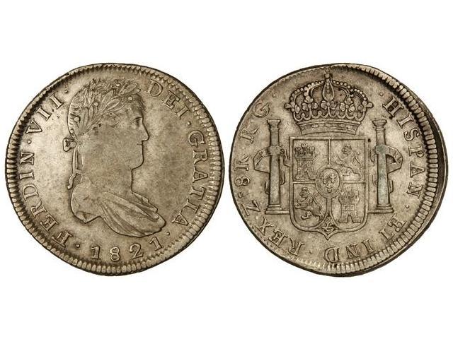 8 Reales. 1821. ZACATECAS. R.G. Algo descentrada en reverso. Cal-697. MBC/MBC+.