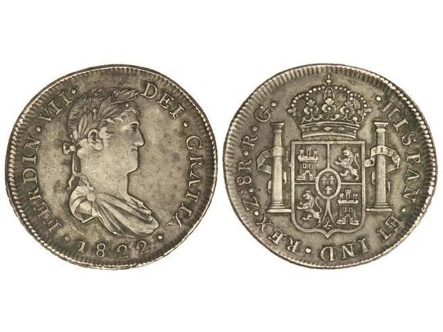 8 Reales. 1822. ZACATECAS. R.G. Pátina. Cal-700. MBC+.
