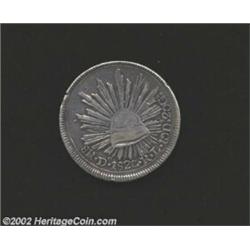 8 Reales Hookneck 1824 Do-RL, KM376, Nice F-VF, minor rim flaw. Important notice: We expect to be auctioning lots at the rate of 200-250 per hour. Sometimes eBay Premier live bid software cannot keep up with that pace, so we strongly recommend that you place a realistic proxy bid now as insurance to avoid disappointment. Also please note that all Heritage/CAA lots purchased through eBay Premier carry a 20% Buyer's Premium. Please make sure you read the Terms and Conditions.